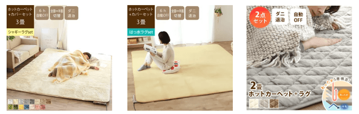足元からくる冷えを防いでくれるラグやホットカーペットがrugooCARPET&HOMEに大集合中