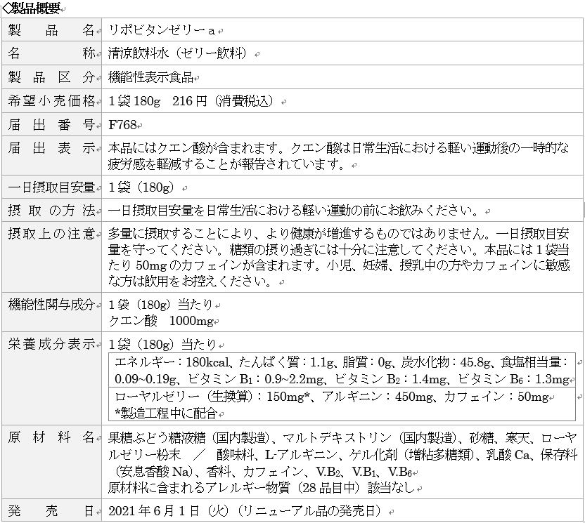 大正製薬株式会社[本社:東京都豊島区 社長:上原 茂]は、昨年4月に新発売をした「リポビタンゼリー」(清涼飲料水)が、このたび機能性表示食品にリニューアルしたことをお知らせします。