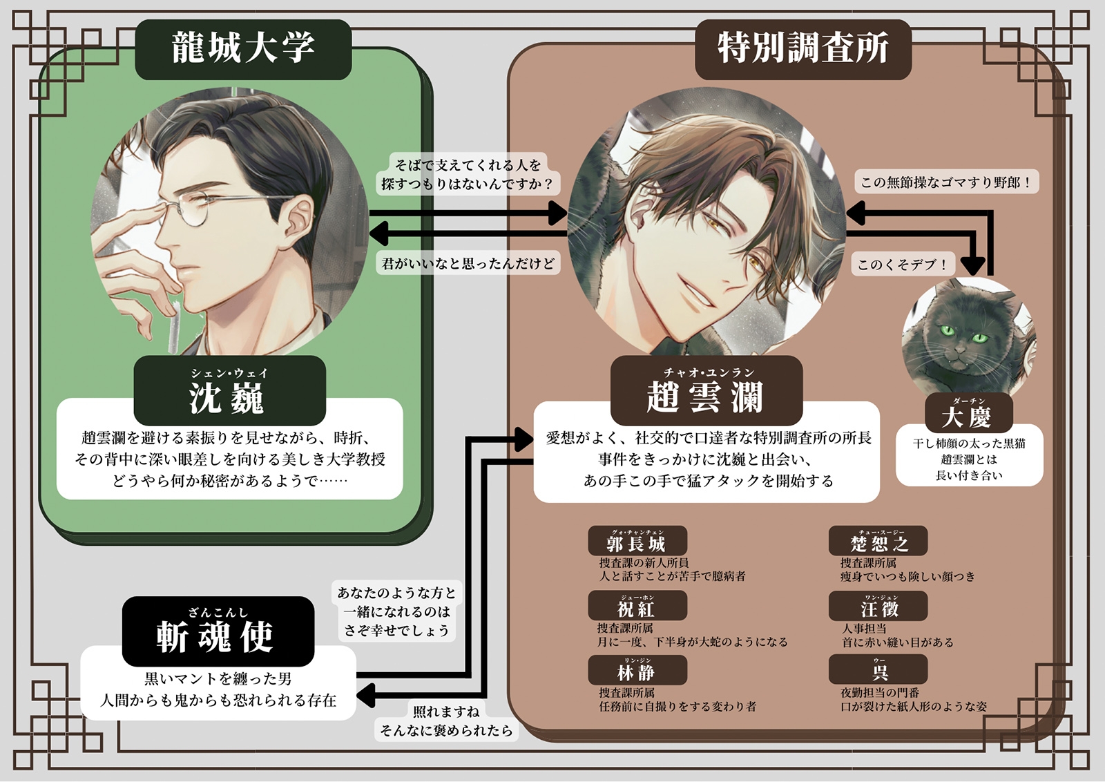 大都市龍城(ロンチェン)。人間ではない存在が引き起こした特殊事件を扱う特別調査処の所長・趙雲瀾(チャオ・ユンラン)は、龍城大学で起きた不思議な事件の捜査中、大学教授・沈巍(シェン・ウェイ)に出会う。