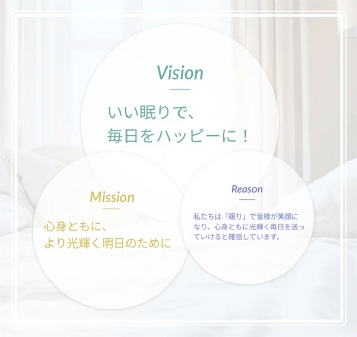 私たちは「いい眠り」で皆さまが笑顔になり、心身ともにより輝く毎日を過ごせる活動を続けています。