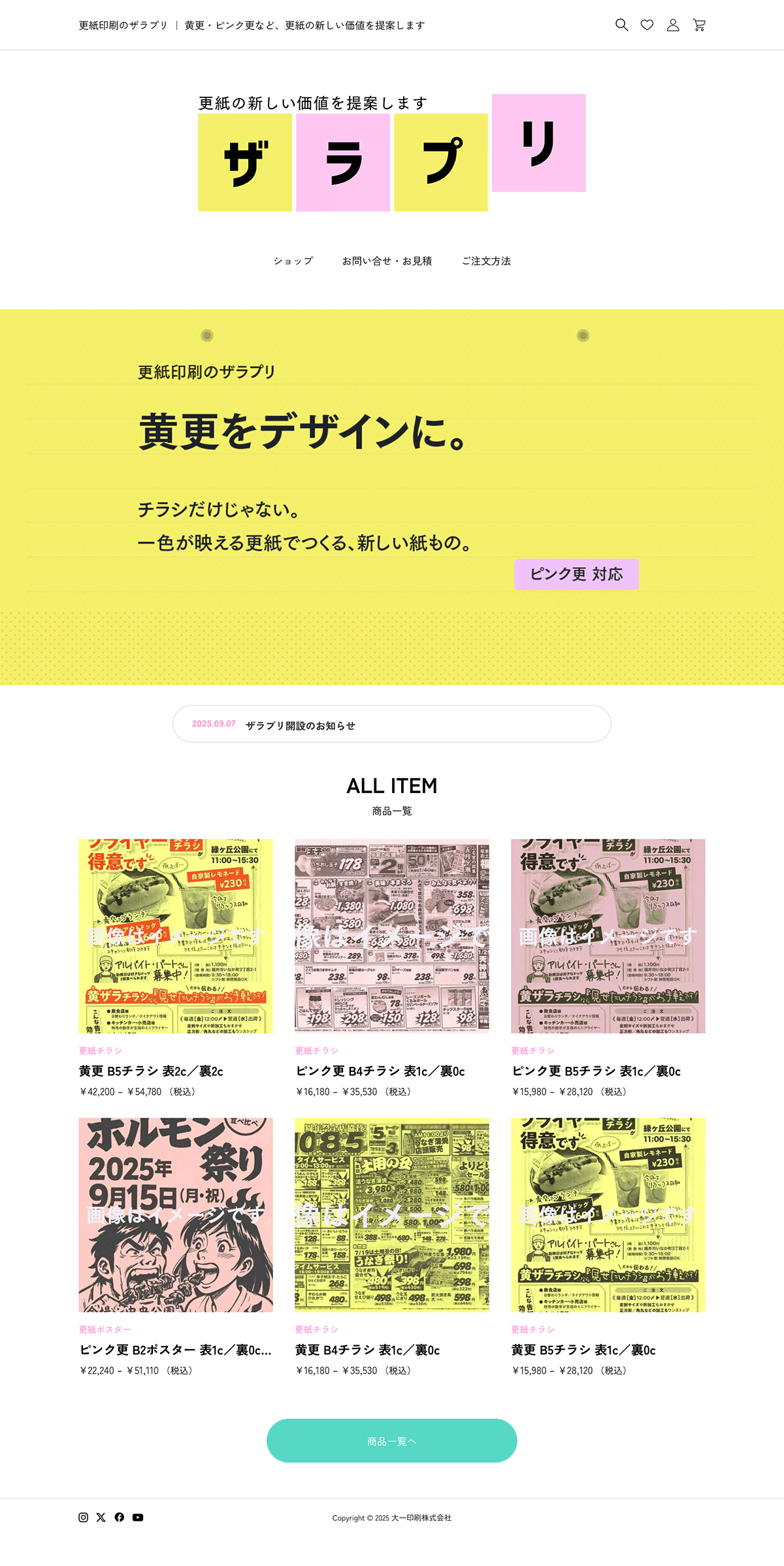 黄更・ピンク更のチラシ/ポスターをはじめ、自由帳・レターパッド等の