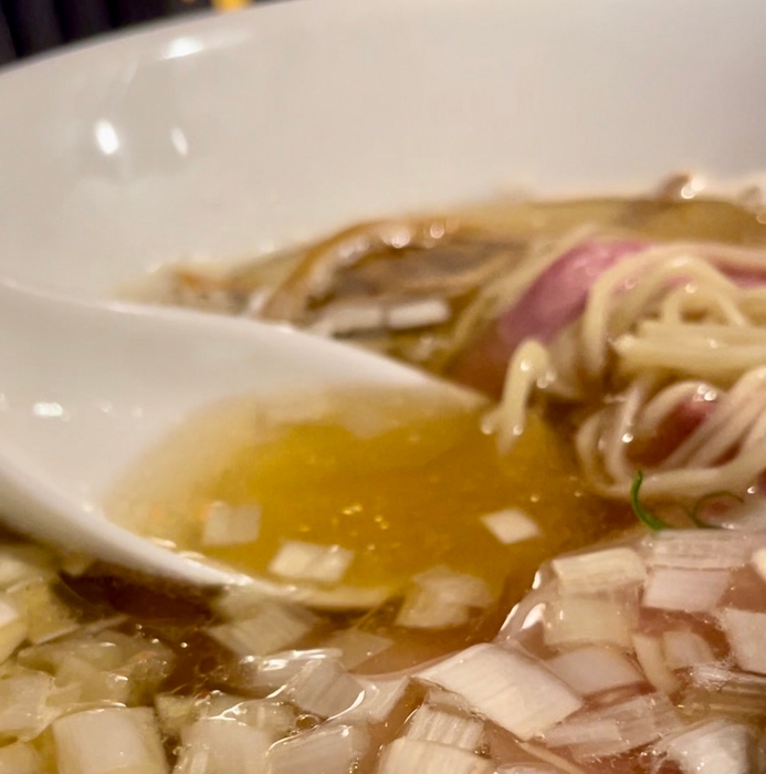 人気ラーメンの名店「中華そば 勝本」出身の店主のラーメンは、動物系の食材は一切使用せず、スープは「のど黒の頭」を贅沢に使った芳醇なコクが特徴です。