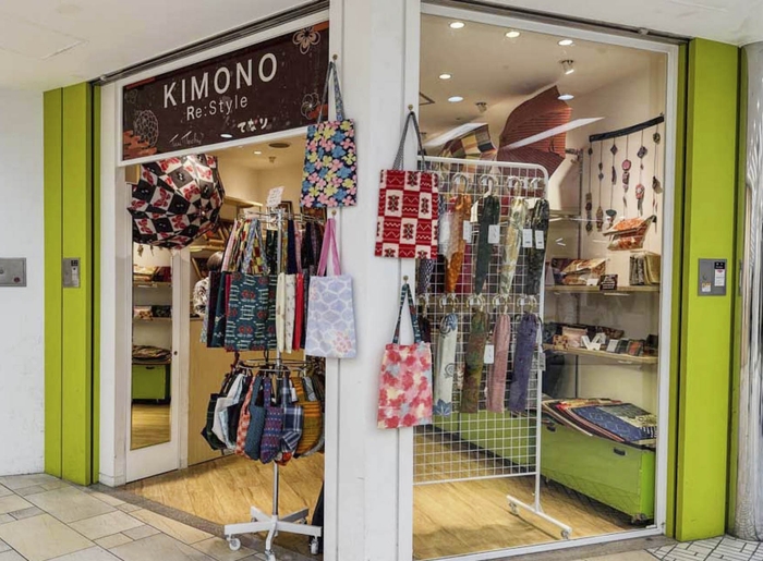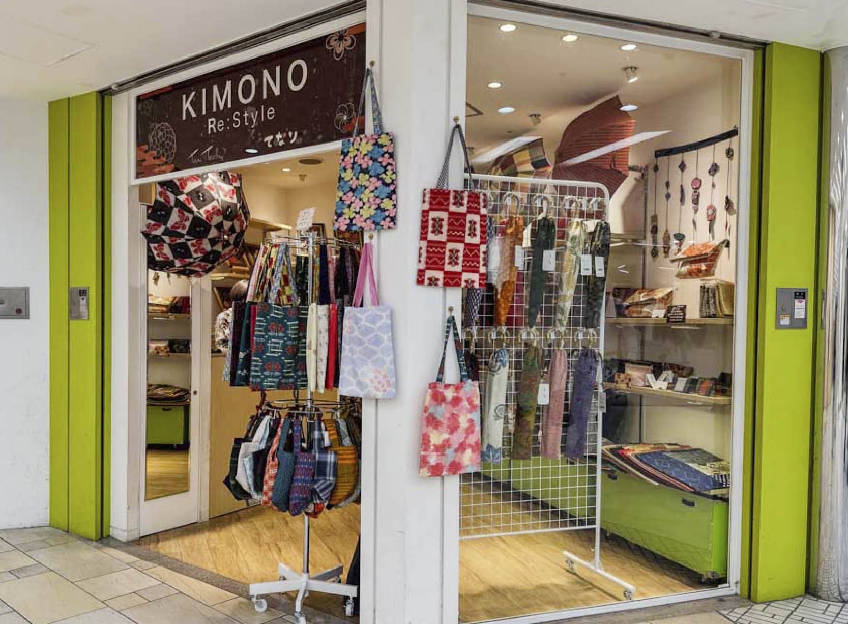 地下街の通りからも、鮮やかな着物生地を活かした商品がひときわ目を引き、ハンドメイドの温もりを感じさせる洗練された仕上がりで、訪れる方を魅了します。