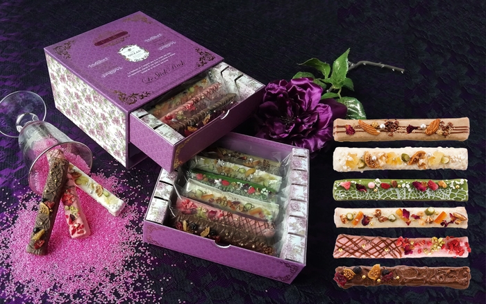 ひとつひとつが上品なトッピングで飾りつけられたスティックラスク。
