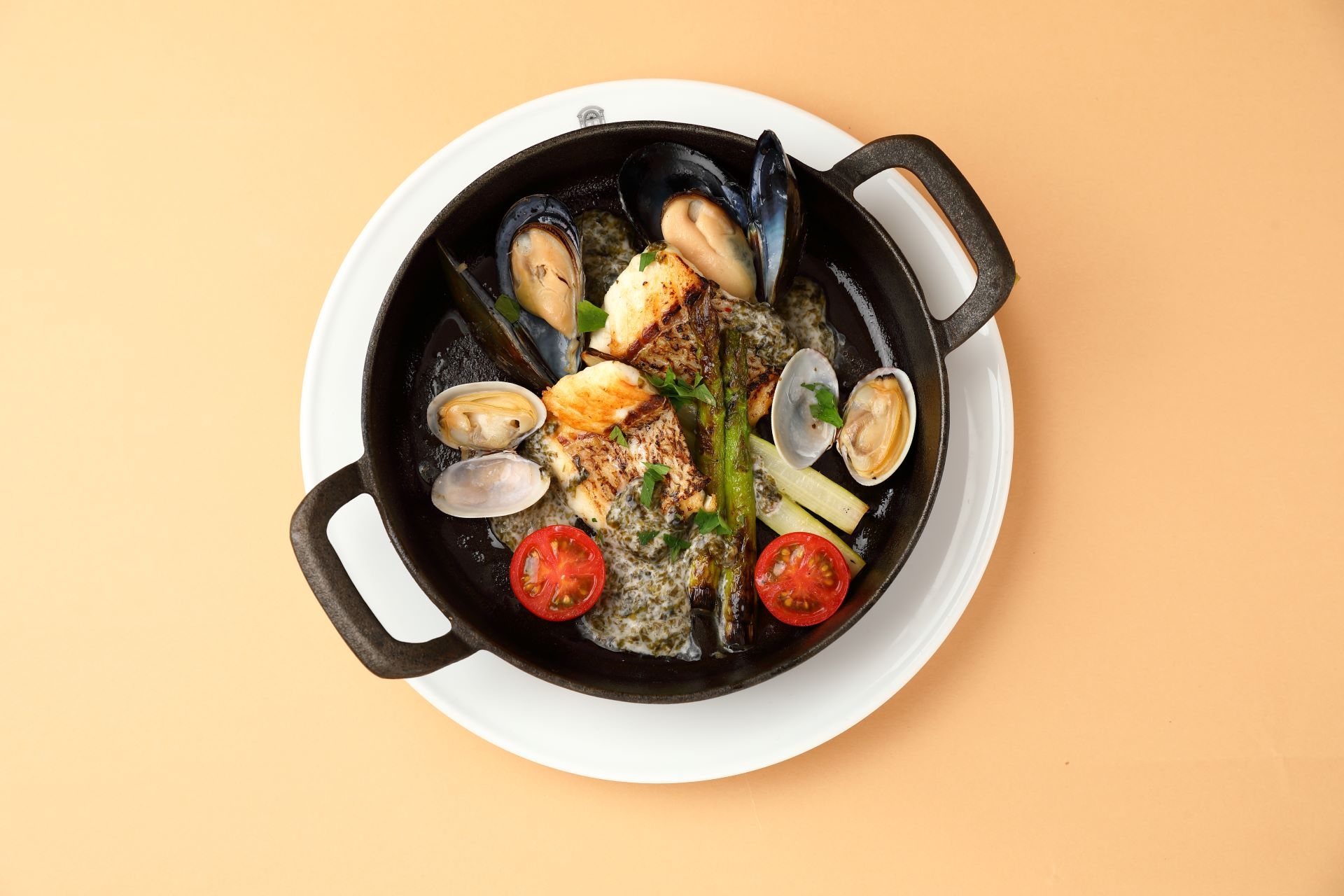 薪窯でじっくりと焼き上げた春の贅沢な一皿です。桜鯛のふんわりとした食感とアスパラガスの香りが調和し、特製のソースで引き立てられます。