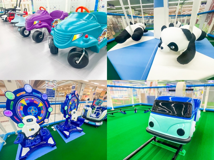 コース内のドライブを楽しめるカートコーナーの他、SNSで話題のひとり用観覧車や、手回しで進む汽車やパンダのメリーゴーラウンドなど楽しい乗りものが大集結!
