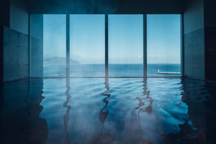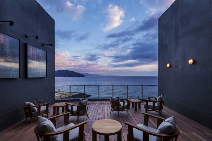 英国人航海士・三浦按針ゆかりの地、静岡県伊東市に位置する全室オーシャンビューの宿。館内随所に海や船旅をテーマにしたデザインが配されたモダンな空間が特徴です。船の甲板をイメージした湯上がり処「サンブエナデッキ」では海風を感じられます。