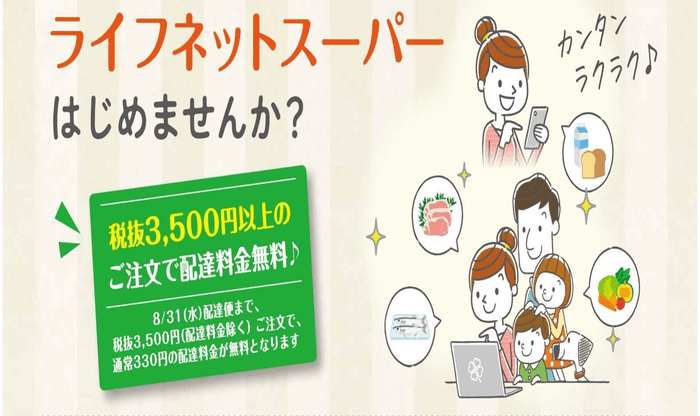 ライフネットスーパーのページをご覧いただき、お届け先が配達エリア内であれば、ご登録完了後すぐにご注文いただけます。