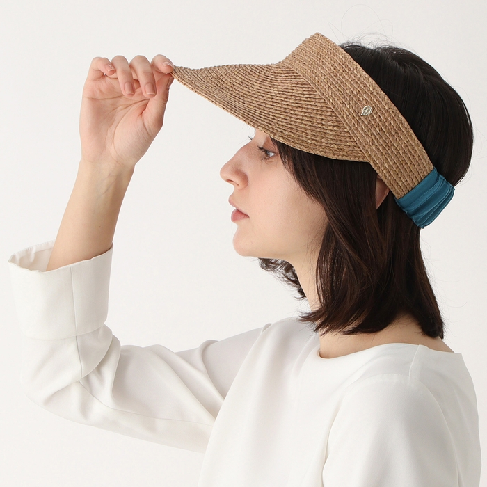 ベーシックなデザインからラフィアとリボンのアクセントが華やかなバイザーがございます。