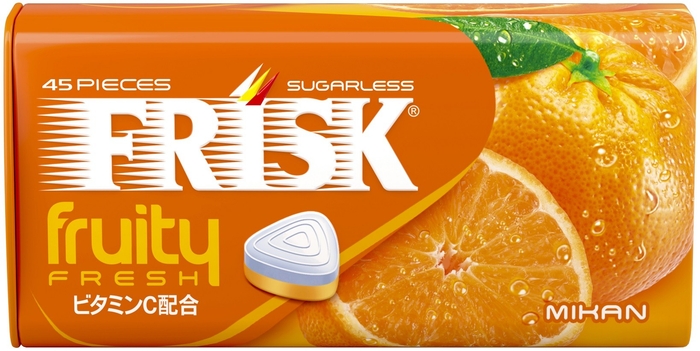 「フリスク フルーティーフレッシュ みかん」は、口に入れた瞬間に、甘美ですっきりとしたみかんの美味しさが広がり、その味わいが長続きする大粒タブレットです。ビタミンCを配合しており、手軽にビタミンCを補給しながら、味わいを楽しむことができます。おいしさで気持ちをリフレッシュできるとともに、口さみしさや空腹感を健康的に紛らわせます。