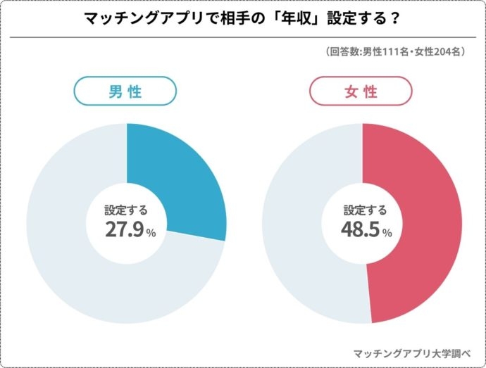 マッチングアプリで「年収」を設定する人は、男性3割・女性5割