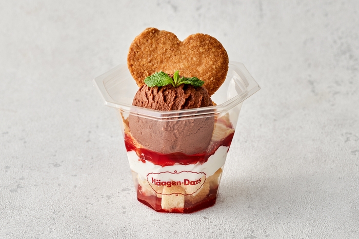 テイクアウト向け商品。ハーゲンダッツ誕生からのロングセラー商品であり、クリーミーでコクのあるバニラアイスクリームのパフェ「バニラ」と、芳醇な香りのカカオがミルクと溶け合った濃厚なスイートチョコレートアイスクリームのパフェ「スイートチョコレート」の2種類の味をご用意しました。パフェのあしらいには、乃が美の「クルトン」や「クロッカン」を用い、贅沢な口休めになっております。