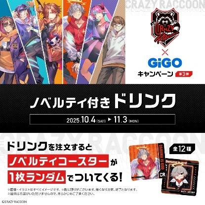 株式会社GENDA GiGO Entertainment(本社:東京都港区 代表取締役社長:二宮 一浩 以下、「当社」)は、当社の対象店舗において、2025年10月4日(土)より、「ゲーマーをかっこよく魅せる」をテーマに様々なシーンで活躍するesportsチーム「Crazy Raccoon」とコラボレーションしたキャンペーンを開催いたします。新規描き起こしイラストを使用した、当社限定のグッズが多数登場いたします。