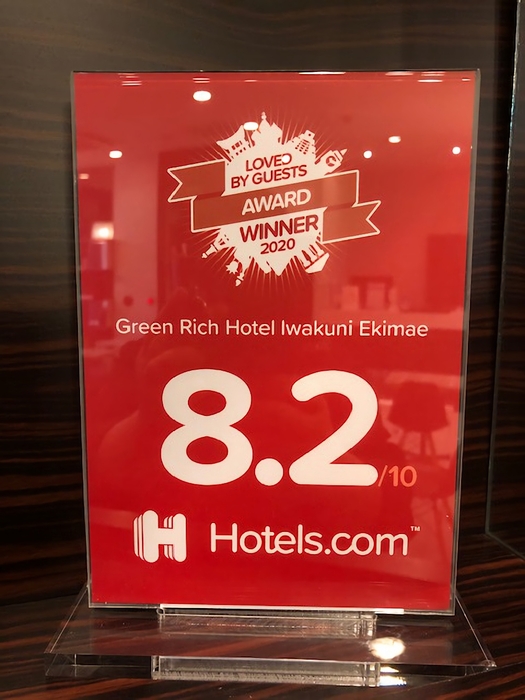 Hotels.com Loved by Guests awards 2020(お客様が選ぶ人気宿アワード)を グリーンリッチホテル岩国駅前 が受賞!