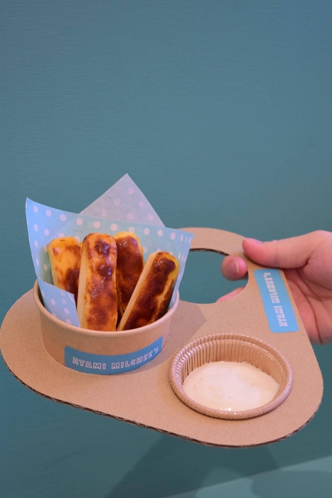 濃厚なのに軽やかで、冷たくて後味さっぱり。暑い日にぴったりのクセになるおいしさです。ひんやりしているのにチーズソースは驚くほど良く伸びて、見た目のインパクトも抜群!食べ歩きしやすいカップトレー入りなので持ち運びやすく、食べ歩きにも最適。いつものチーズケーキとはひと味違う、新たなおいしさの“映えスイーツ”をお供に、熱海散策をお楽しみください。