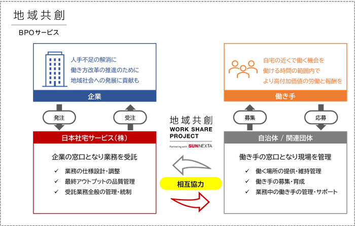 「地域共創BPOサービス」は、これらの「潜在的労働力」の活用に着目した、地域コミュニティ委託型の新たなサービスです。