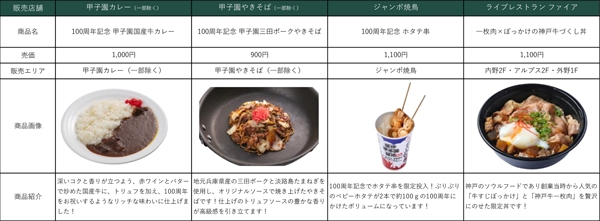 ※その他、阪神甲子園球場100周年記念グルメは特設サイトからご確認ください。