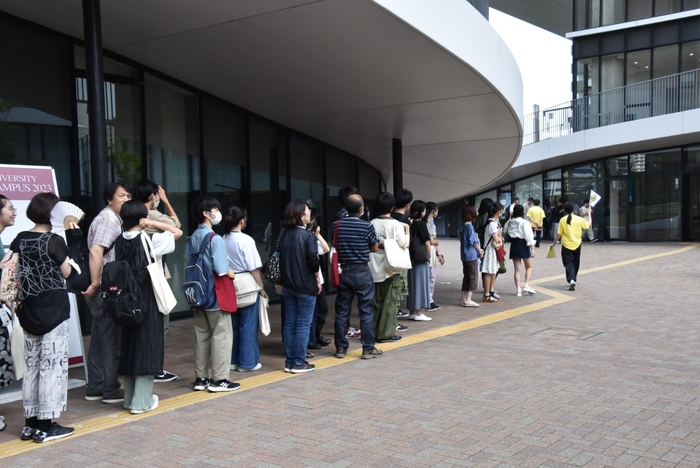 外国語学部の少人数英語授業や人間学部による心理学の模擬実験、都市情報学部のCG制作の基本を学ぶ体験演習など、各学部の特色あるプログラムも人気を集めたほか、キャンパス内のカフェテリア「MU GARDEN TERRACE」もオープンし、来場者はひと足早くキャンパスライフを体験していました。