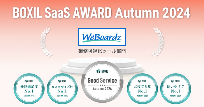 WeBoardzが、「BOXIL SaaS AWARD Autumn 2024」 業務可視化ツール部門で「Good Service」ほか4つのNo.1に選出されました。