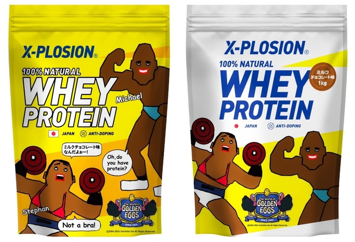 伝説のCGアニメ The World of GOLDEN EGGSと プロテインメーカー X-PLOSION(R)が初コラボ! 「ホエイプロテイン ミルクチョコレート味 1kg」が4月下旬発売