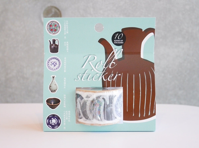 美術館の収蔵品10件をモチーフにしたステッカーで、連なってロール状に収納されています。マスキングテープと同様の粘着力で、一枚ずつはがして使用できます。気品のある陶磁器を、シール感覚で気軽に使ってみませんか。