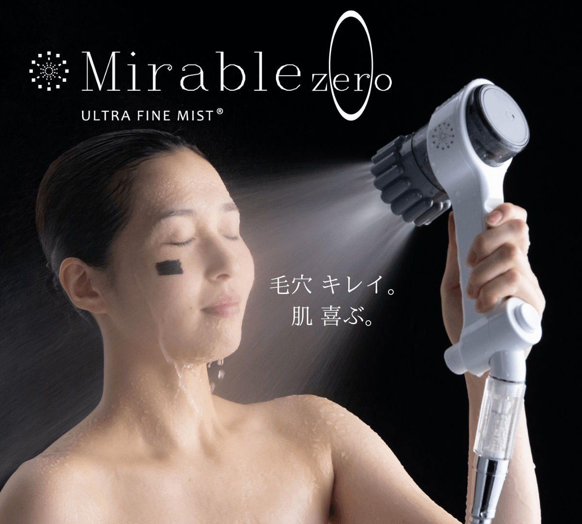 株式会社サイエンスが開発したウルトラファインミストシャワー「ミラブル」は、すぐれた洗浄力を持つウルトラファインバブルを含む水流を作り出す、画期的な「シャワーヘッド型美顔器」です。ウルトラファインバブルとは、直径1μm(0.001mm)以上100μm未満の気泡であるマイクロバブルよりもさらに小さな、直径1μm未満の気泡のことで、この気泡が油性ペンをも落とす高い洗浄力と、シルクのような肌感触を実現しています。