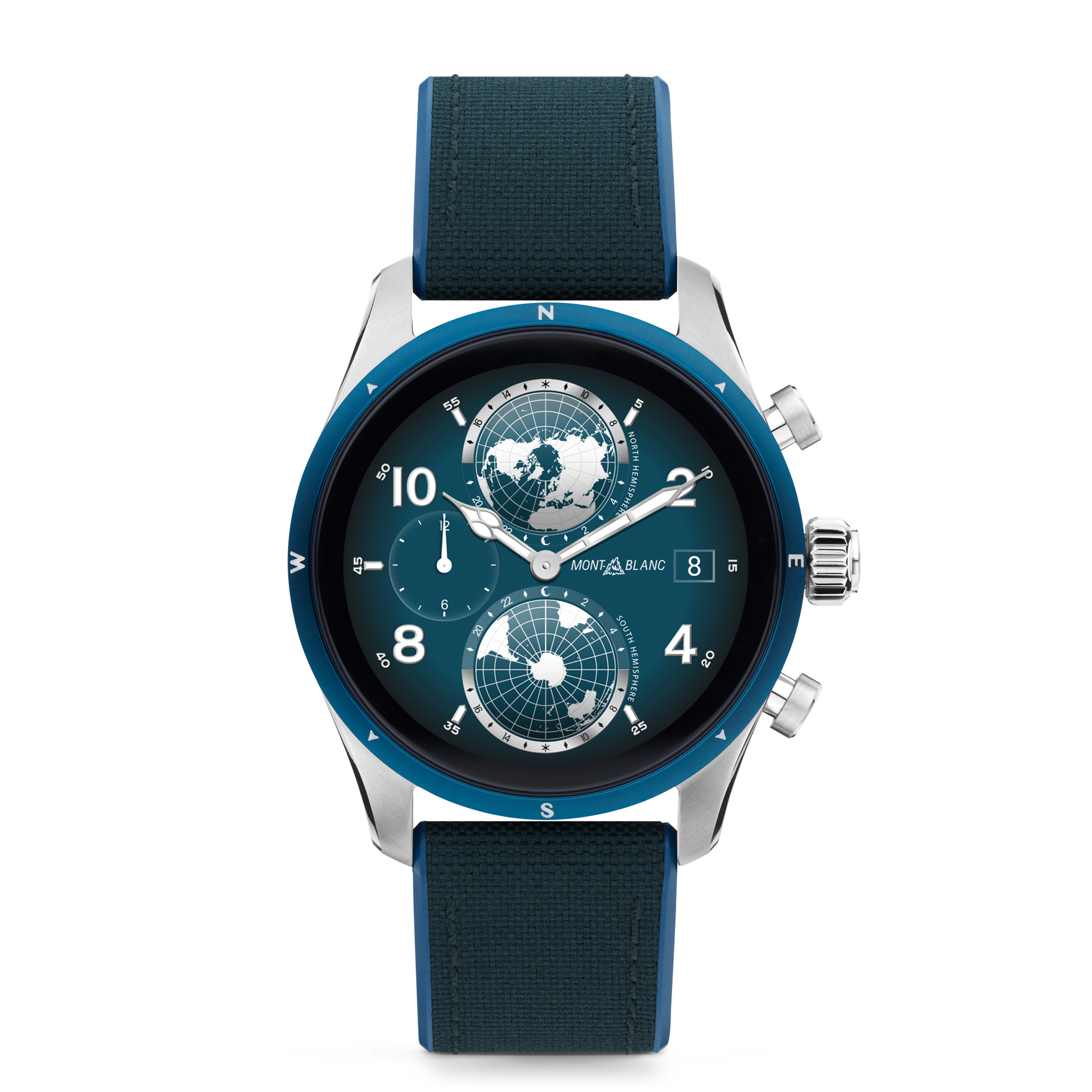 モンブラン SUMMIT3 スマートウォッチは、高級時計製造のデザインとコンテンポラリーなスマートウォッチ技術を融合し、SUMMIT ラインのレガシーを継続していきます。氷河にインスパイアされた最新のブルーカラーは、軽量のチタニウム ウォッチケースとグレイシャーテーマに設定可能なウォッチフェイスが特徴です。交換可能なブルーのカーフレザーとナイロンラバー製ストラップを備えた、モダンで多用途に使えるラグジュアリーなスマートウォッチです。