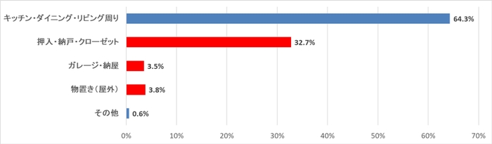 (3) カセットボンベの保管場所では、押入や、物置・ガレージなどの屋外スペースなど、存在を忘れやすい場所に保管している人が4割以上にのぼり、災害時などいざという時に『どこにしまってあるか分からない』恐れのある人が一定数いる。