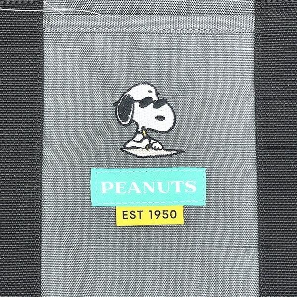 こちらはグレーのお色違いです。グレーではサングラスを付けた スヌーピーでお馴染みのジョー・クールのデザインです。 このバッグはRE-PETシリーズとリサイクルペットボトル原料にしており、環境にも配慮されています。なので、便利でおしゃれで環境にも配慮できてしまうエリート君のようなアイテムかも(笑)