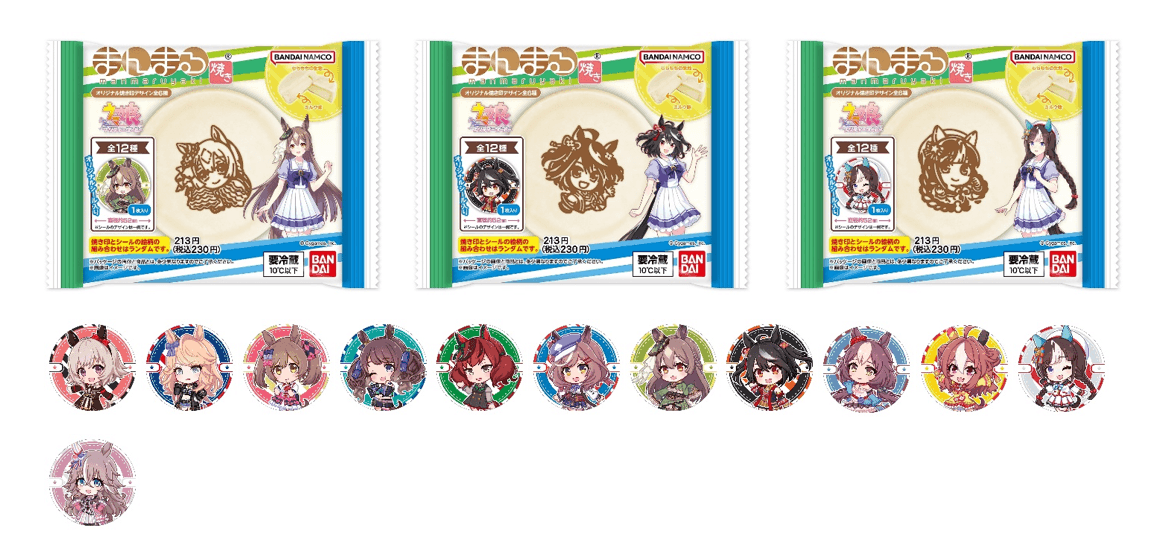 ウマ娘 プリティーダービー まんまる焼き2(上)、オリジナルシール(下)