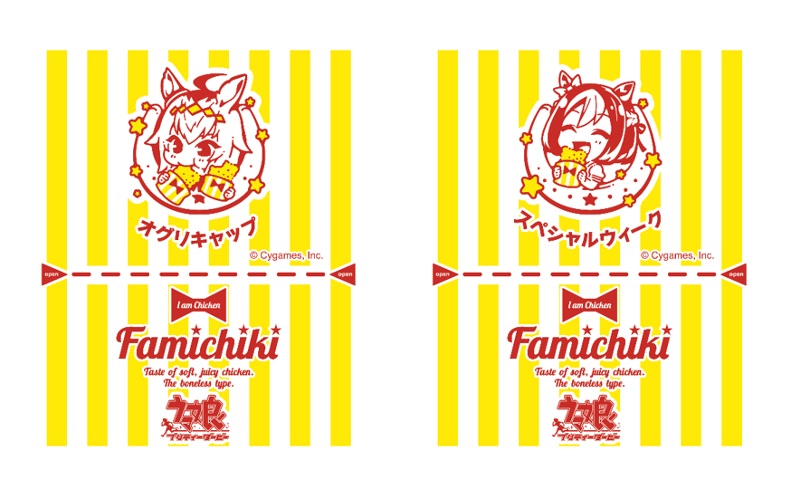 数量限定で「ウマ娘」がデザインされたホットスナック袋(以下、ファミチキ袋)が、2023年8月26日(土)※から登場します。描きおろしの「オグリキャップ」「スペシャルウィーク」が描かれたデザインです。