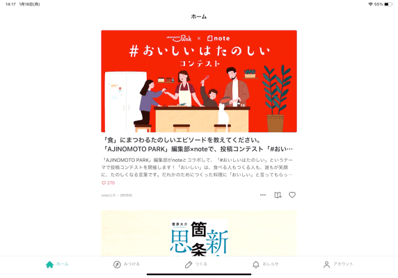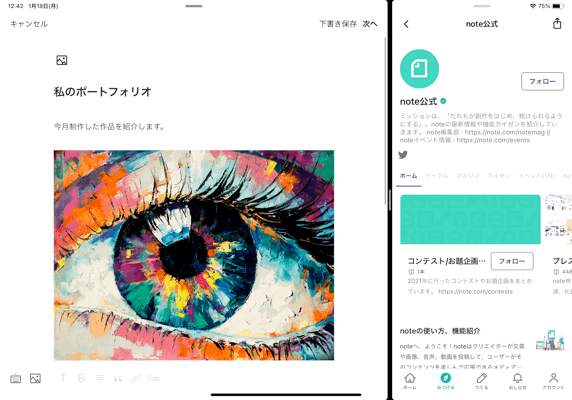 メディアプラットフォームnoteのアプリがiPadに対応しました。イラストやマンガ、動画など、iPadはさまざまな創作活動がしやすいデバイスです。今回のアップデートから、クリエイターがiPadでつくった作品を、そのままnoteアプリで投稿できるようになりました。また、iPadの画面にあわせた大きな表示で、ユーザーが作品を楽しみやすくなります。