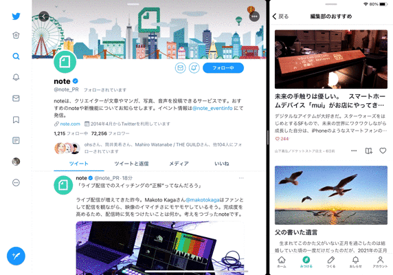 noteアプリのiPad対応