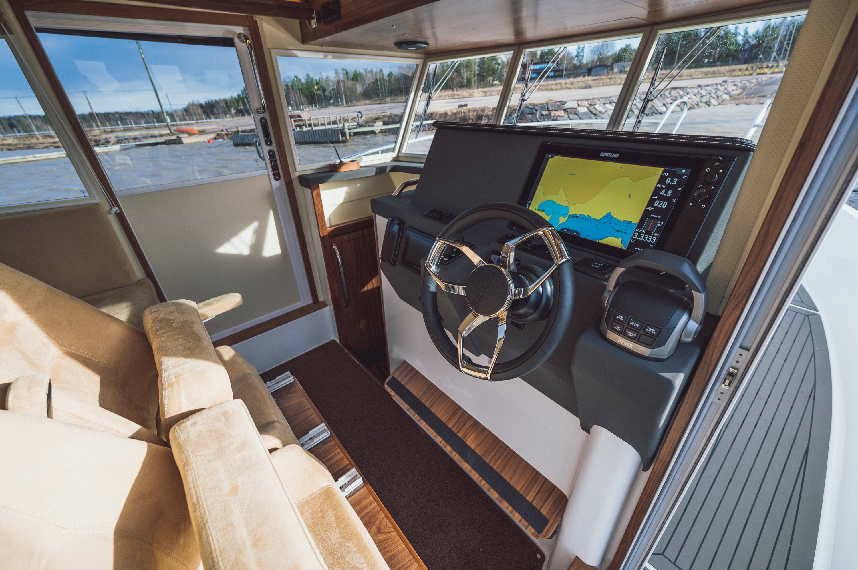 今回日本にやってくるNord Star28+と31+は、Nord Starの定番とも言える箱型のパイロットハウススタイル。走りはもちろん、注目いただきたいのはその丈夫さです。積層は15層と厚く、硬化には必ず3週間をかける丁寧なモノづくりは北欧ならではのこだわりであり、全て職人の手業で行われています。