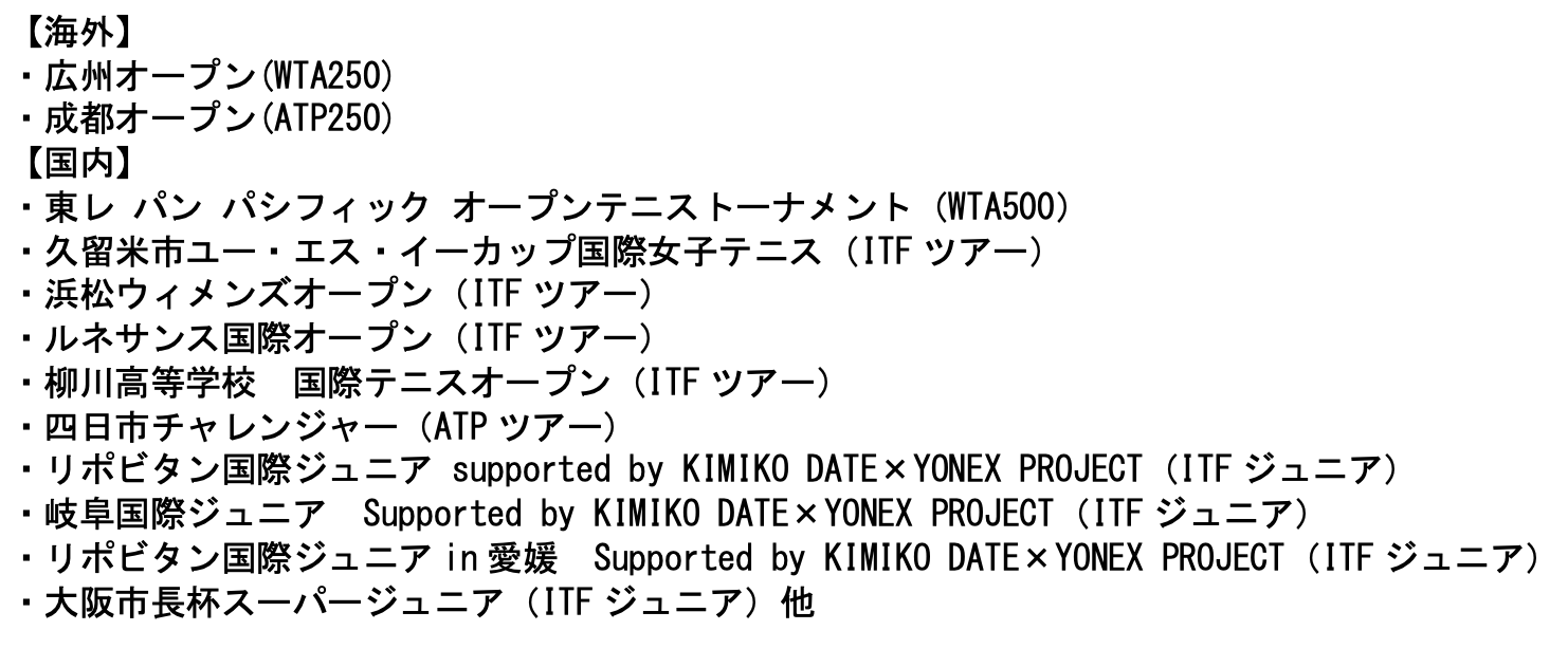 ヨネックス株式会社(代表取締役社長:アリサ ヨネヤマ)は、2025年より、アジアで開催される以下のATPツアー3大会において、オフィシャルボールとして選定されたことをお知らせいたします。
