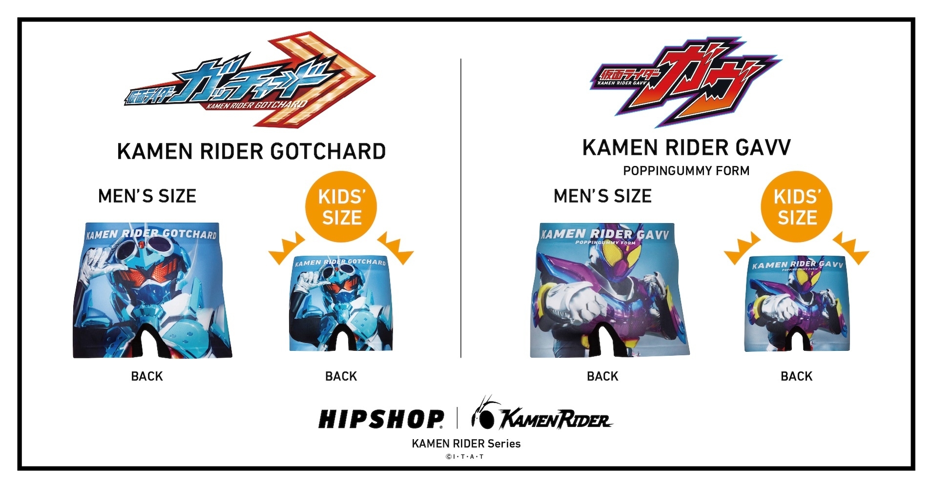 パワーアップ!仮面ライダーガヴも!仮面ライダーガッチャードも! 昭和から令和の仮面ライダーたちが再集結! アンダーウェアブランド【HIPSHOP(ヒップショップ)】と 仮面ライダーコラボレーション第2弾! 圧巻の総勢全84デザインに!
