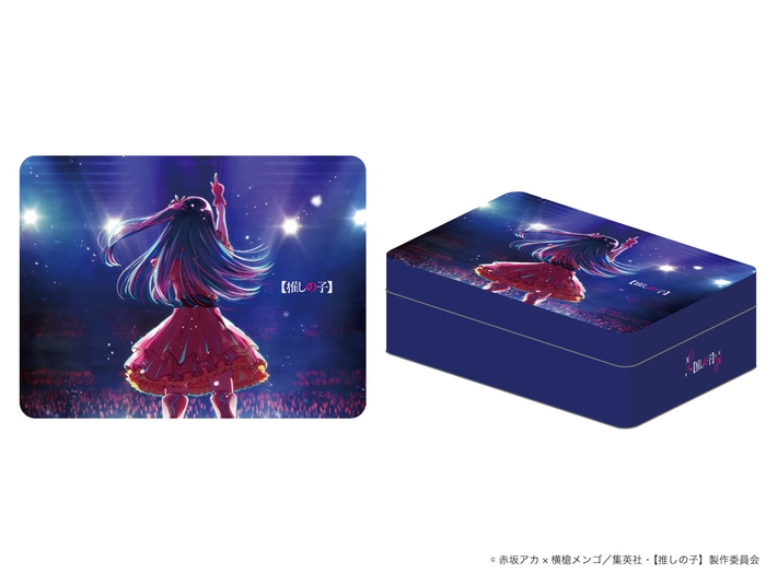 また、「アイセット」「B小町セット」の両方が入った特別パッケージもご用意。ステージに立つアイの後ろ姿が印象的な、B5サイズが収まるビッグサイズの限定缶に入れてお届けいたします。