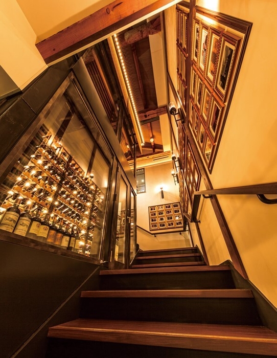 ●厳選されたワイン:吹き抜けを利用した迫力あるワインセラーには常時300種類をご用意