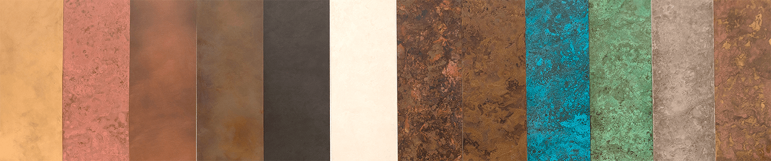 そこで、当社が工場を構える富山県高岡市の伝統工芸品である「高岡銅器」の銅の染色に使われる伝統技術を利用した「ORII MARBLE(オリイマーブル)」に目を付けました。「ORII MARBLE」は、有限会社モメンタムファクトリ―・Oriiが作り上げた、大理石や天然木と同様の自然な表情と深みを持った銅のタイルです。