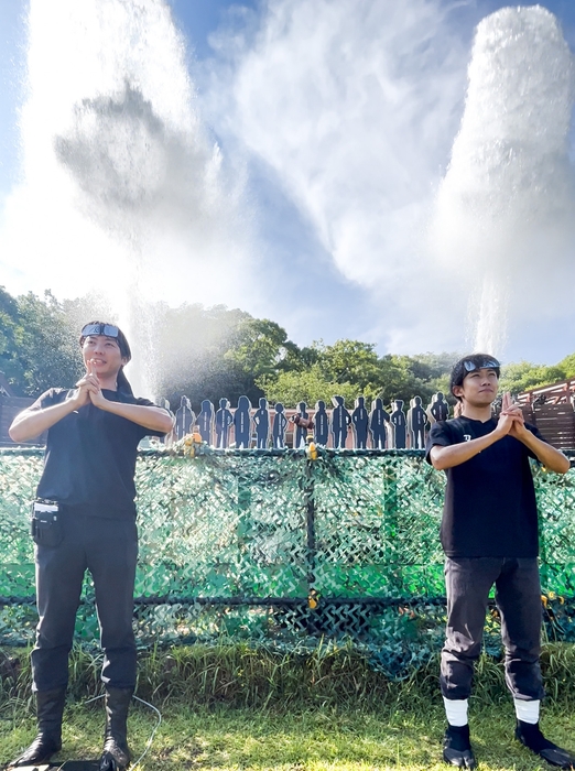 本イベントでは、参加者は、火影岩前の指定エリアにて、忍里のスタッフより「水遁・水龍弾の術」を発動するための、印のレクチャーを受けることができます。学んだ印を結び、「水遁・水龍弾の術」と忍術を唱えることにより、約50Lの水しぶきが吹き上がり、まるで参加者自身が忍となって忍術を発動できるリアル忍術体験を楽しむことができます。
