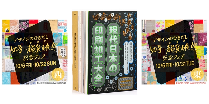 「デザインのひきだし50号・超突破記念フェア」を東西2拠点で開催中!! 東京・青山ブックセンター本店では実物綴込みサンプル全160点が見られるサンプル展を、全国の書店では特典冊子付きフェアも!