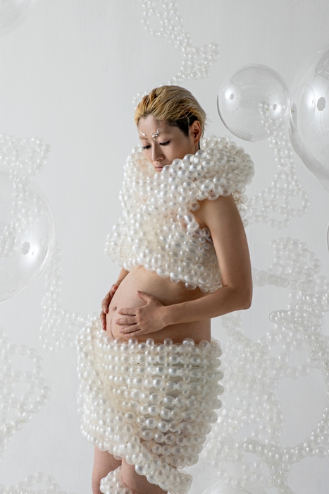 さらに、病と共に生きながら授かった新たな命を題材に、自身の身体をモデルにした作品《生命》を発表。命を宿す身体を柔らかく包み込むバルーンは、生命の力強さとはかなさを象徴しました。今回のコレクション「DIVERSITY」は、これらの経験の延長線上にあります。儚いバルーンを、障がいや病を抱えるモデルたちが纏うことで、「困難を抱えながらも輝く命」をランウェイで可視化します。バルーンは永遠には残らない素材ですが、その一瞬の強い輝きは、「命の儚さと、その中で生まれる力強い美しさ」を象徴しています。