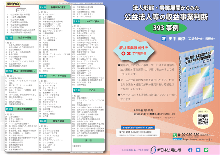 収益事業該当性を○×で判断!!「法人形態・事業展開からみた 公益法人等の収益事業判断393事例」6/25新刊書発売!