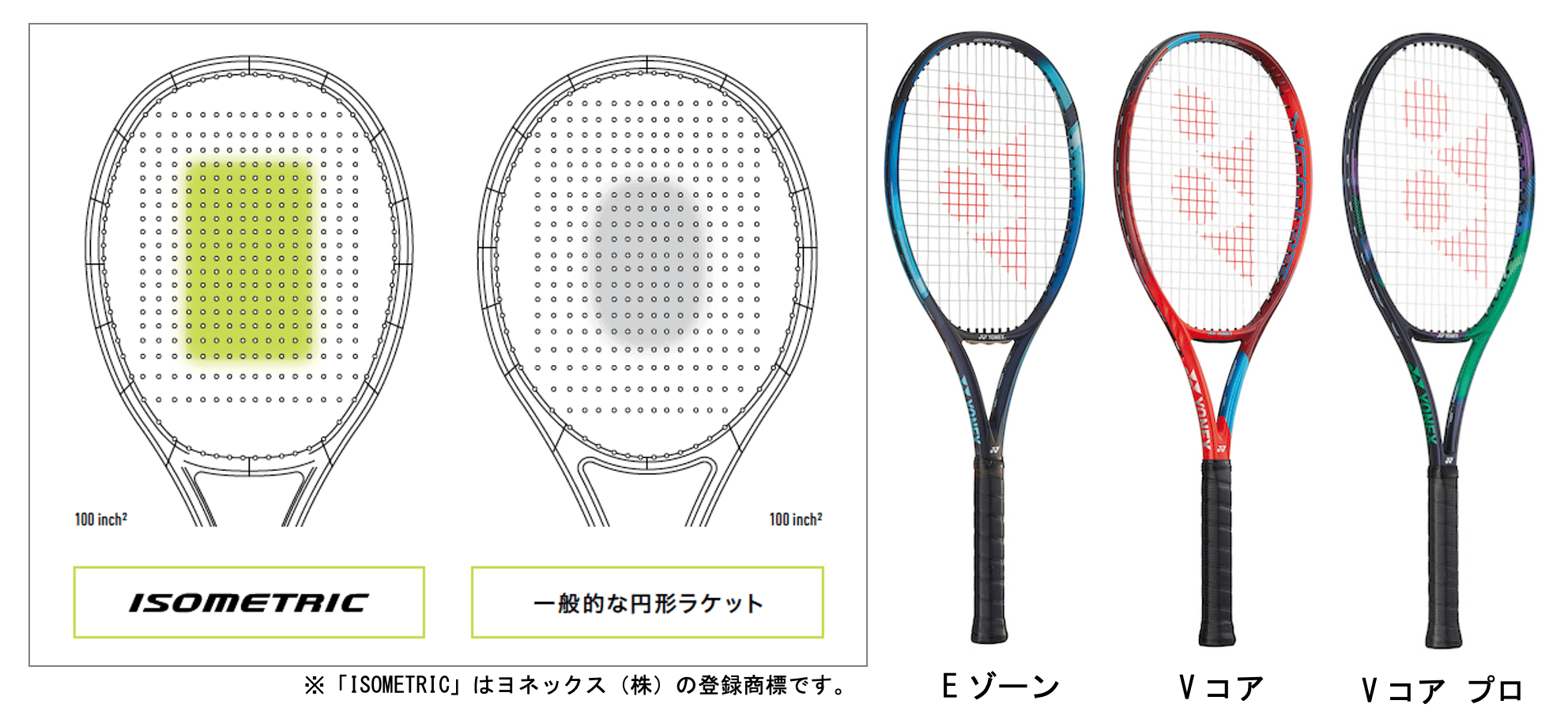 弊社のテニスラケットは国内の自社工場でひとつひとつ丹念に創り上げています。最大の特徴である「アイソメトリック®」は、縦横のストリングの長さを均等に近づけることで、スウィートエリアを拡大させる弊社独自の形状理論。40年以上もの間、世界のトッププレーヤーに愛され続け、数々のタイトルを獲得し、現在もなお進化を続けています。