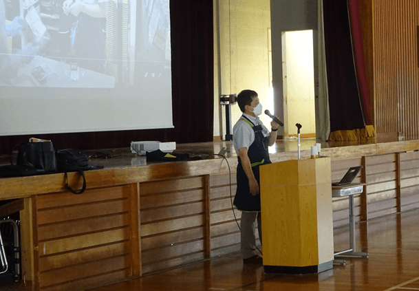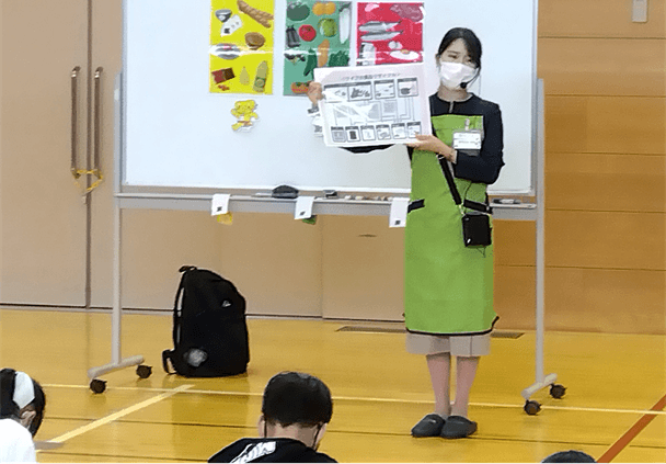 店舗の売り場やバックヤード、開店前の様子などをまとめたDVDを事前に視聴いただき授業当日はスーパーマーケットに関する質問タイムを中心に実施。ライフが行う食品ロス削減への取り組みの紹介や食べることの大切さを学ぶ食育も行いました。