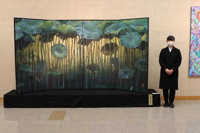17日には芸術学部の教員の審査があり、最高賞の加計勉大賞にはデザイン芸術学科4年生 板野尚美さん(岡山県立総社南高等学校出身)のガラス作品「纏(まとい)」が輝きました。
