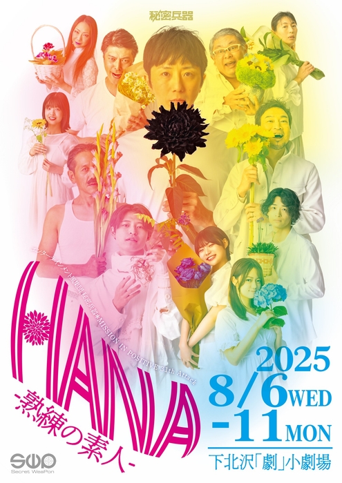 エンターテインメント風集団 秘密兵器 MISSION IN POSITIVE 31th Attack『HANA -熟練の素人-』が2025年8月6日(水)〜11日(月)に「劇」小劇場(東京都世田谷区北沢2-6-6)にて上演されます。