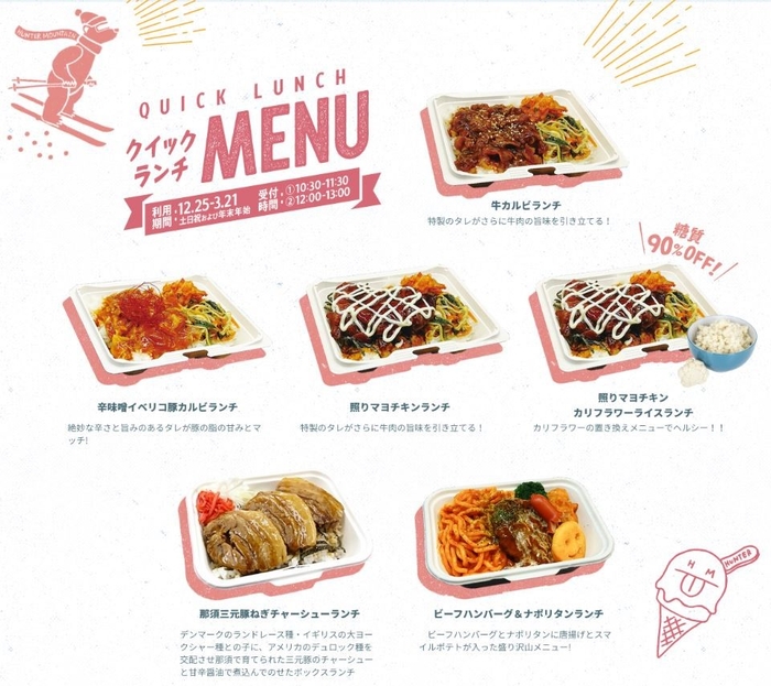 「ハンターマウンテン塩原」(栃木県那須塩原市、総支配人:吉岡厚志)において、指定時間で食事が受け取れる「クイックランチパック」及び新規に「クイックランチ」の販売を開始した事をお知らせします。