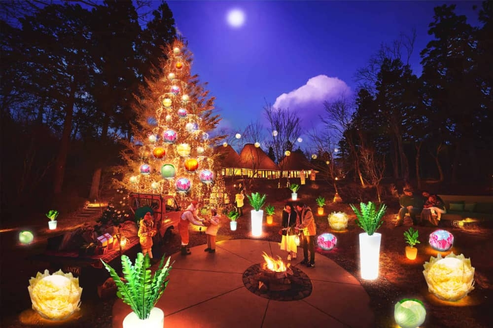 日本初のアグリツーリズモリゾート「星野リゾート リゾナーレ那須」は、2022年12月1日~25日の期間、野菜モチーフのベジクリスマスツリーが煌めく「アグリクリスマス」を開催します。期間中、施設内にある「POKO POKO広場」は、野菜をモチーフにしたオブジェが煌めき、まるで光る野菜畑のようになります。また、今年は約10メートルの高さを有するもみの木に、「カボチャ」、「トレビス」、「カステルフランコ」などの野菜のイルミネーションが装飾され、POKO POKO広場が一層鮮やかに彩られます。さらに、野菜の話をしたり、クリスマスプレゼントとしてポン菓子をゲストに渡したりする「アグリサンタ」が登場。イルミネーションに光を灯したり、ゲストと写真撮影をしたりとアグリサンタと過ごすひとときも楽しめるイベントです。