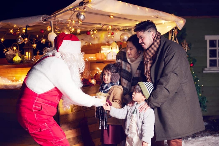 イベント期間中、アグリサンタが野菜オブジェとアグリクリスマスツリーの点灯をします。イルミネーション点灯後、アグリサンタから野菜についての話を聞いたり、クリスマスプレゼントのポン菓子を受け取ったりすることが可能です。プレゼントを片手にサンタとの記念写真を撮影することもできます。